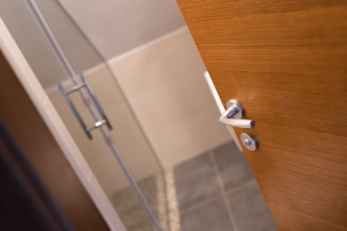 Ulazna vrata u kupatilo su sa klasičnim šarkama. Naravno, radi otpornosti na kupatilske uslove, imaju kupatilsku obradu i bravu i kupatilski prag.