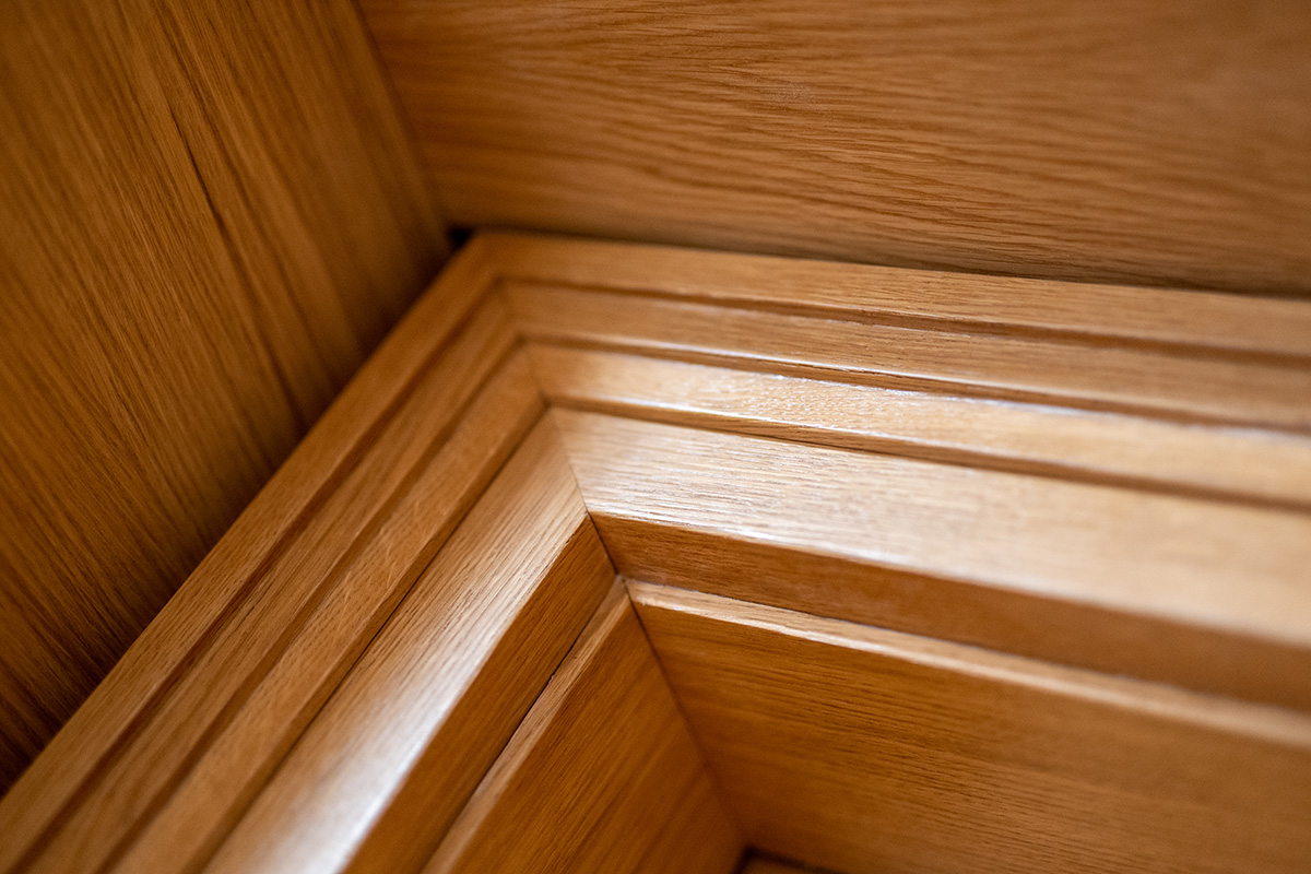 BOSAL je za klijenta izradio set hotelskih vrata. Ova vrata izrađena su u prirodnom furniru hrasta, bajcovanog u boju po izboru klijenta. Klijent je želeo da vrata sa spoljne strane izgledaju malo ekskluzivnije, pa je odabrao da sa obe strane budu ugrađene aplikacione L5 završne lajsne.