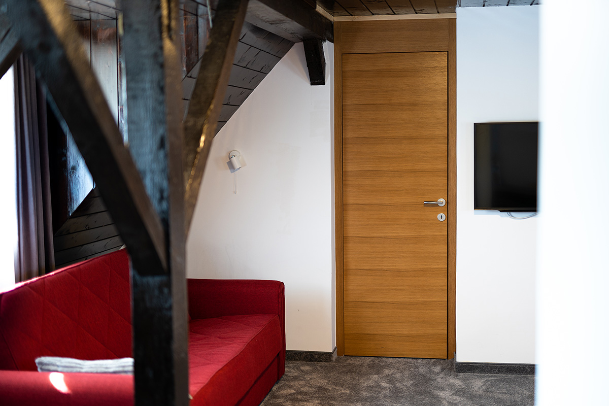 Kako su vrata prilično uska, jer su u pitanju apartmani u potkrovlju, imperativ je bio da se dobije što širi otvor, tako da na pojedinim mestima u ovom slučaju nemamo pervajze u punoj širini, jer smo ih nadomestili širinom samog otvora.