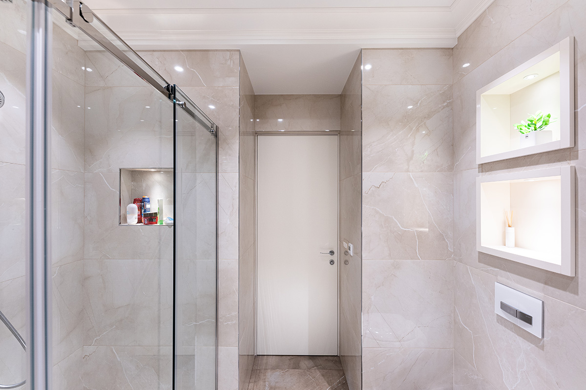 Na kupatilskoj strani, završena je keramika u ravni sa krilom. Takođe, sa unutrašnje strane se, kao završni deo, nalaze bele lajsnice.