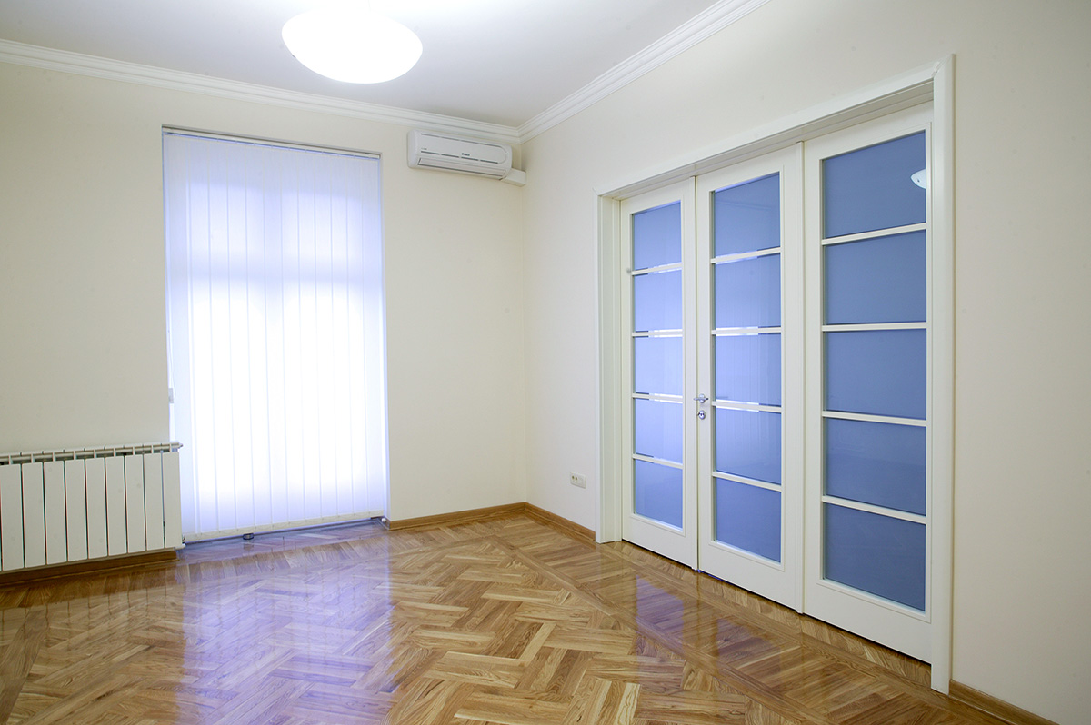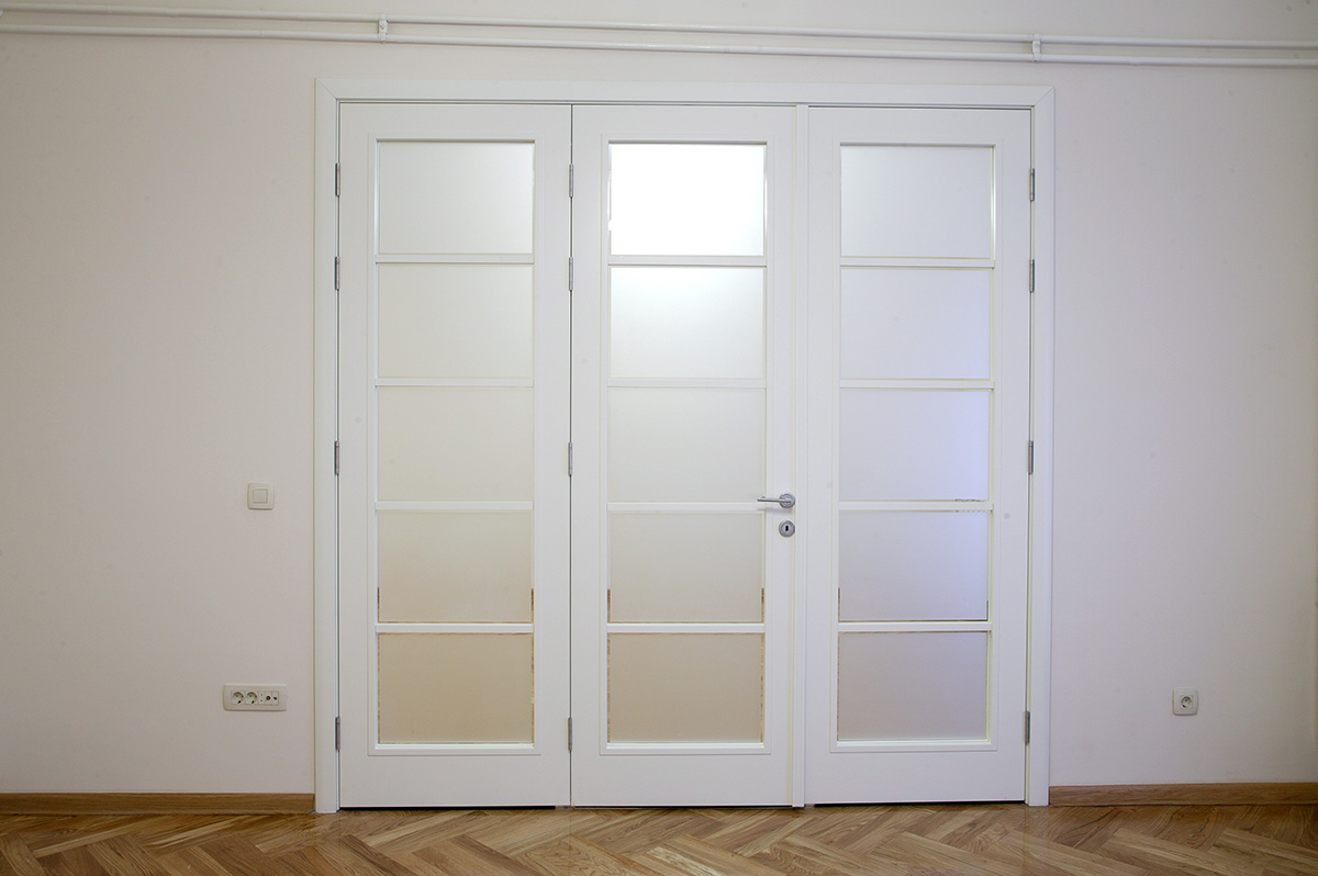 Trokrilna sobna vrata imaju na sebi prečke kojima je staklo podeljeno na pet delova, što vizuelno savršeno izgleda (u praksi smo stekli utisak da staklo na vratima najbolje izgleda kada se podeli prečkama na pet delova).